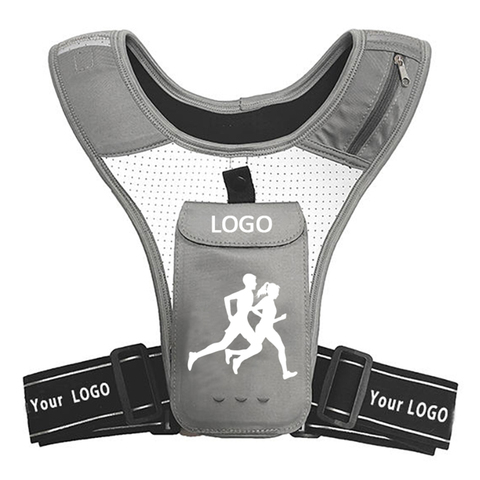 מפעל BSCI נושם OEM לוגו מותאם אישית מחזיר אור חבילת חזה ספורט תיק מחזיק טלפון אפוד ריצה